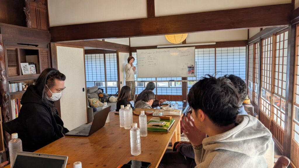 せんのみなとの古民家での交流BBQ、伊能忠敬の事業構想力に触れるフィールドワークです。 近い課題感を持った方同士ならではの安心できる場で事業について共有し、多角的なフィードバックを受け取ることで、新年の確実な「ネクストアクション」を持ち帰ることを目的としました。
