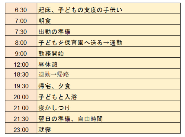 父親の1日のスケジュール例